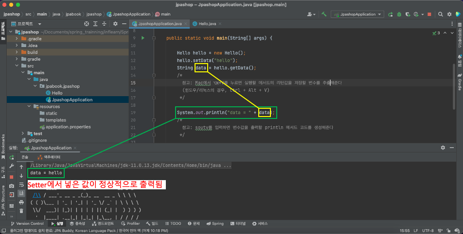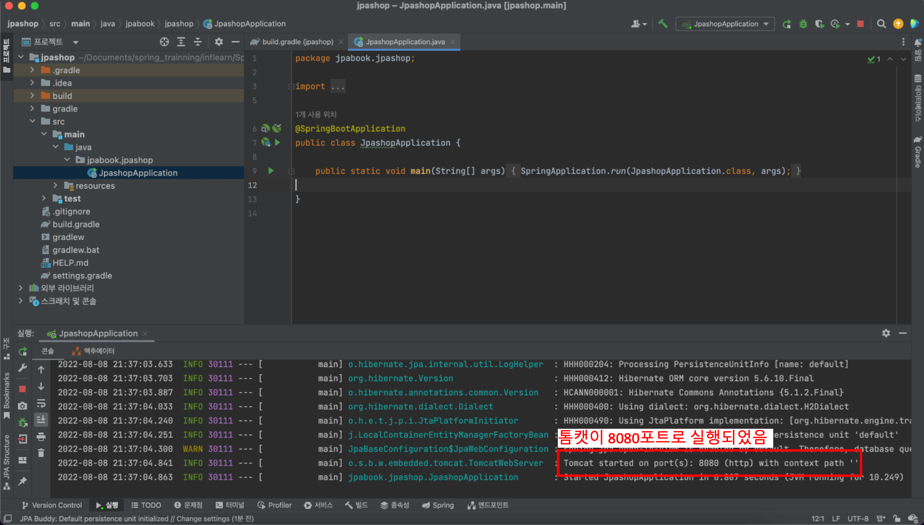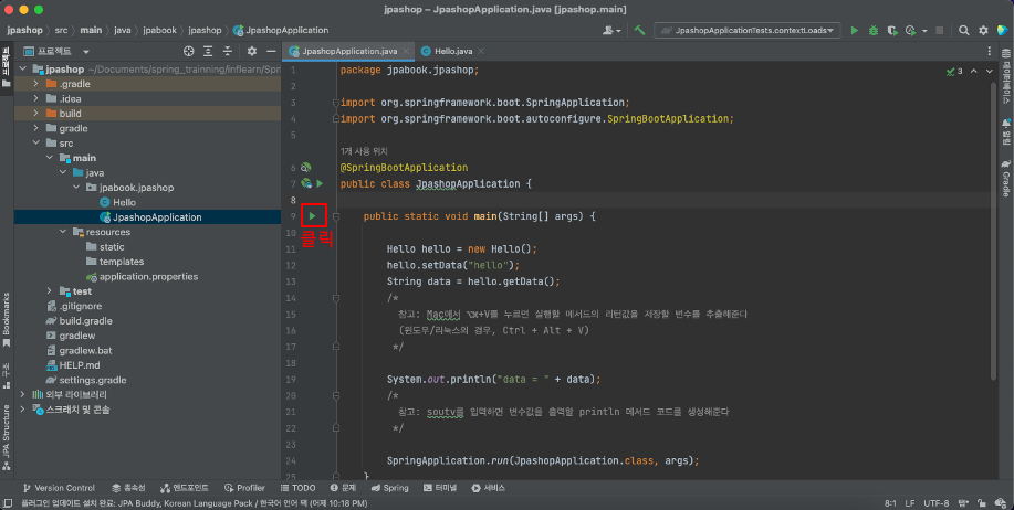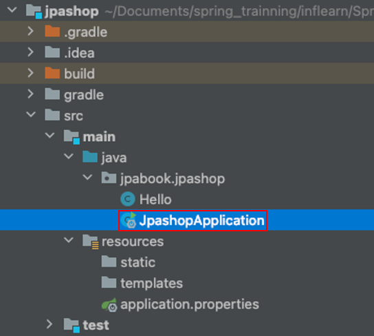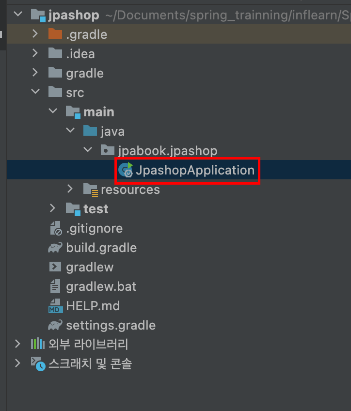 프로젝트 탐색창에서 JpaShopApplication.java를 연다