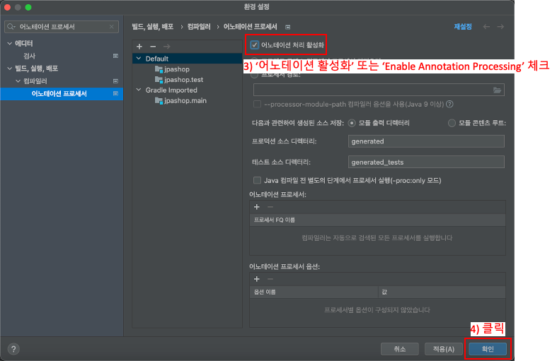 Annotation Processor 기능을 활성화 시켜줘야 한다