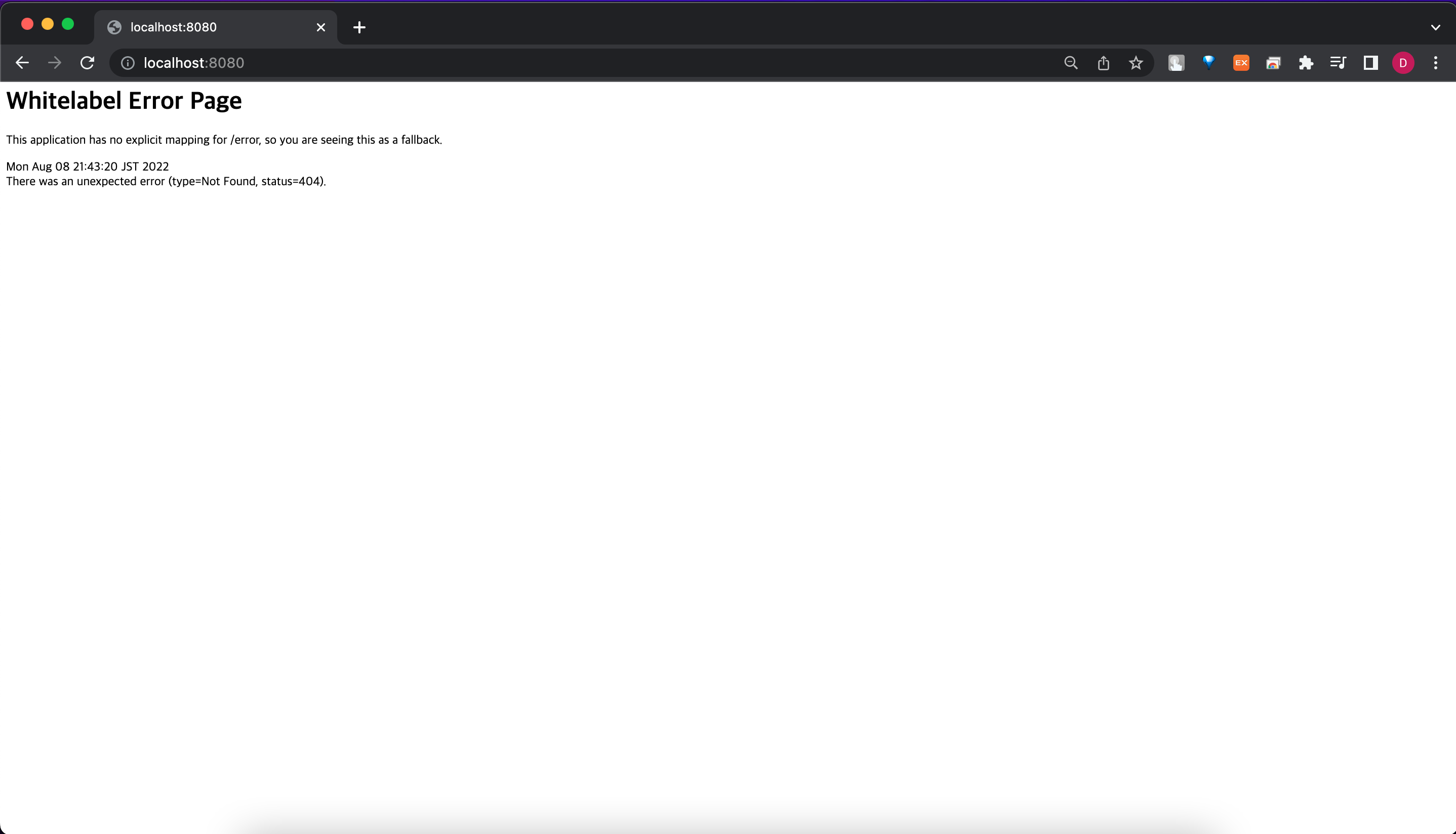 현재 프로젝트만 생성하고 아무코드도 작성하지 않았기 때문에 저런 화면이 뜨는 것이 정상이다