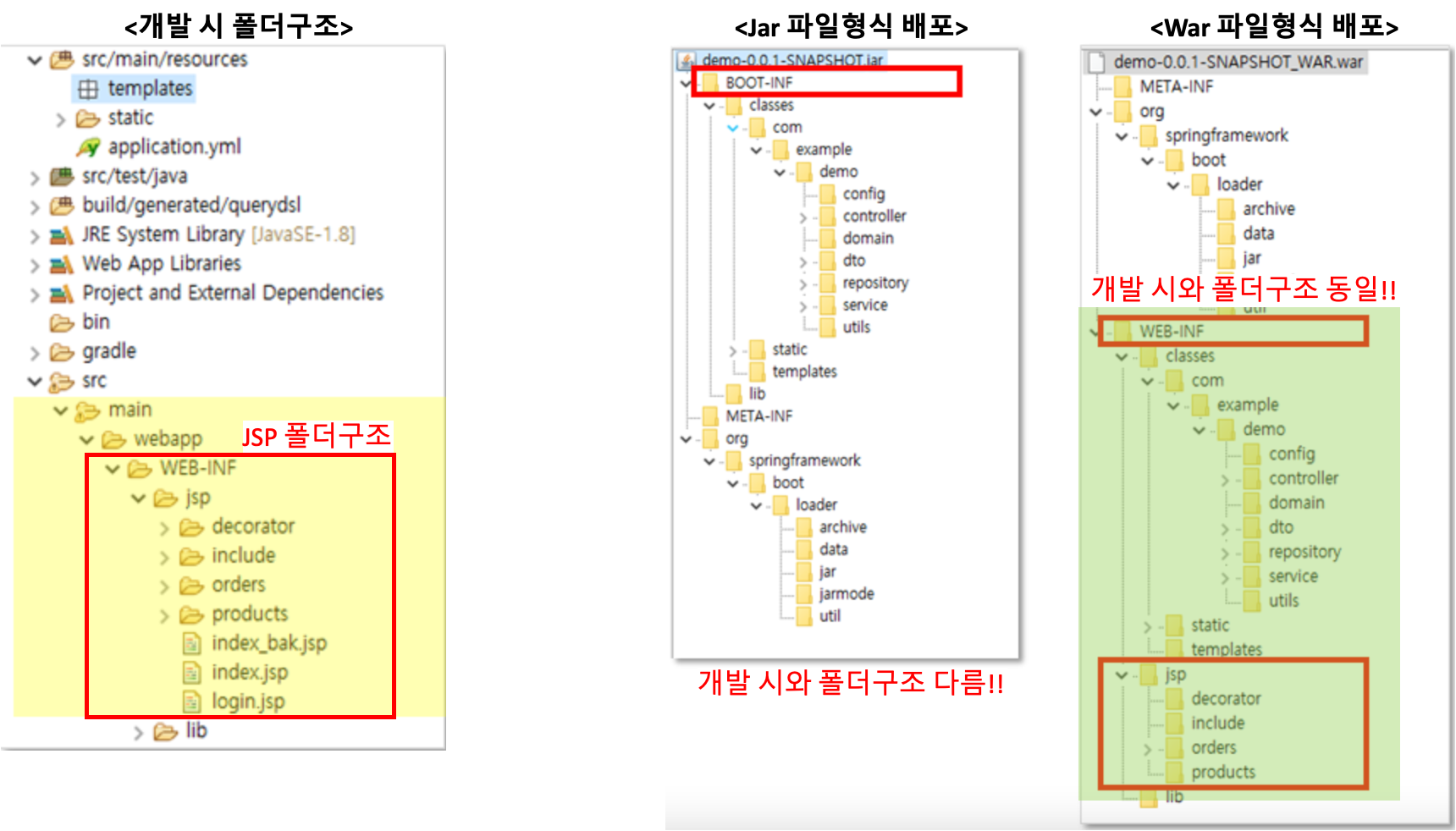 앞에서도 언급했듯이, Jar 파일로 배포할 경우 폴더구조가 달라지기 때문이다