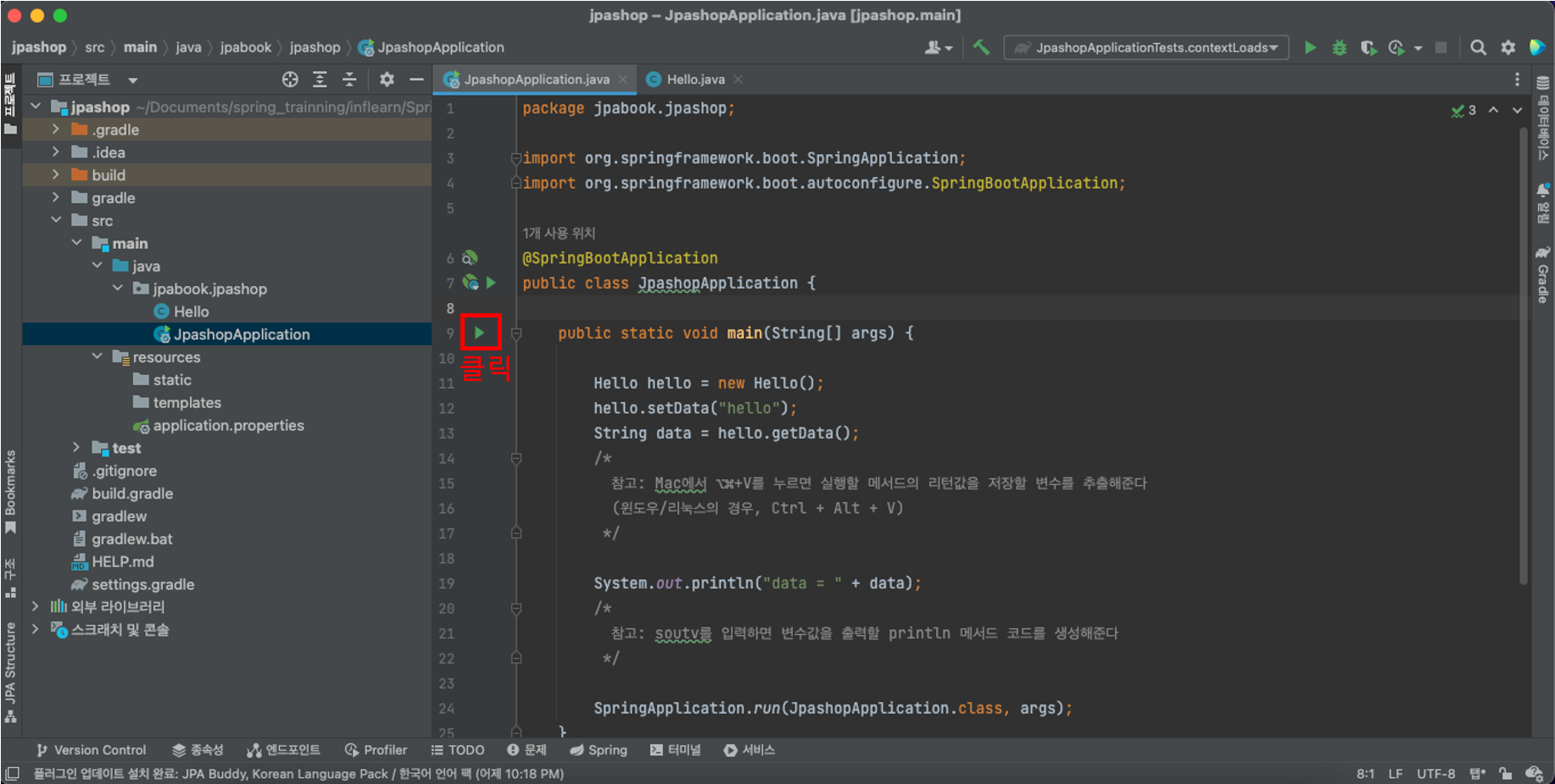 (JpashopApplication 클래스를 열고 실행할 것)