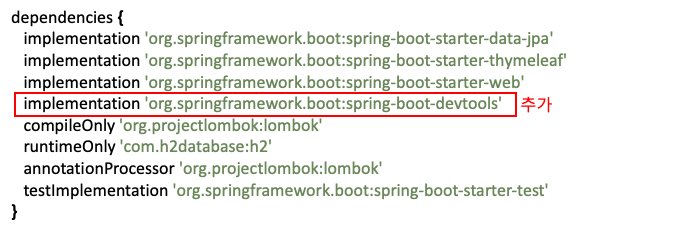 이를 위해 Spring Boot Devtools 라는 툴을 사용한다.