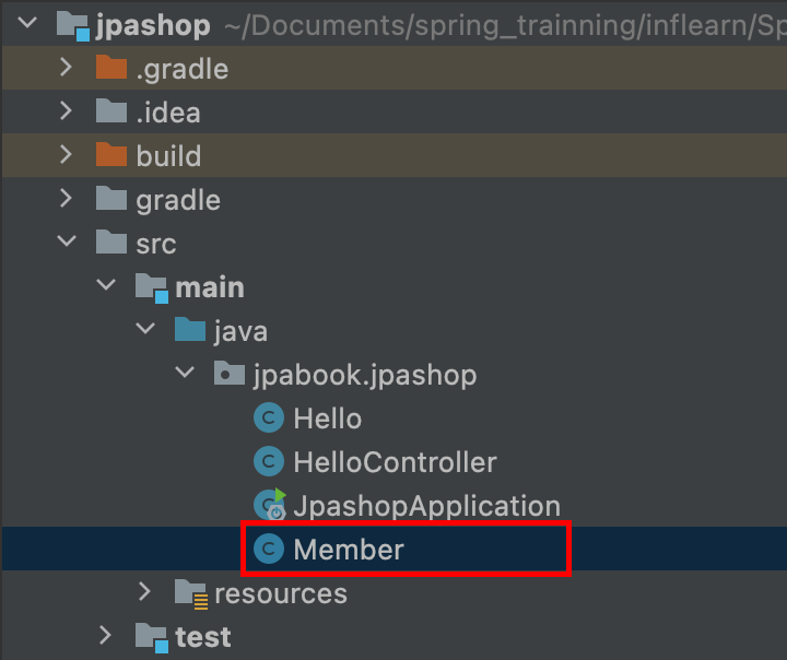 아래 사진과 같이 Member 클래스를 생성한다