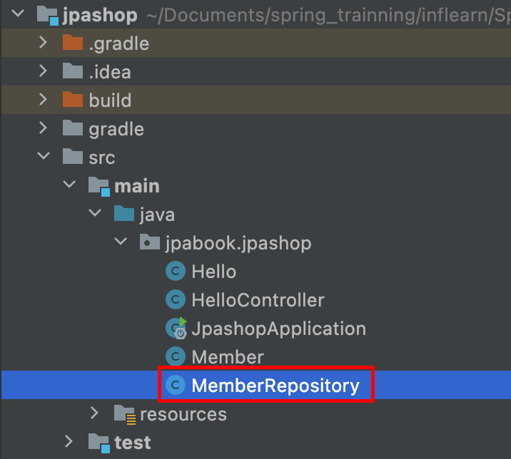 아래 사진과 같이 MemberRepository 클래스를 생성한다