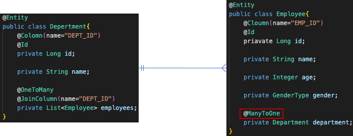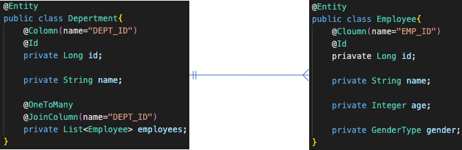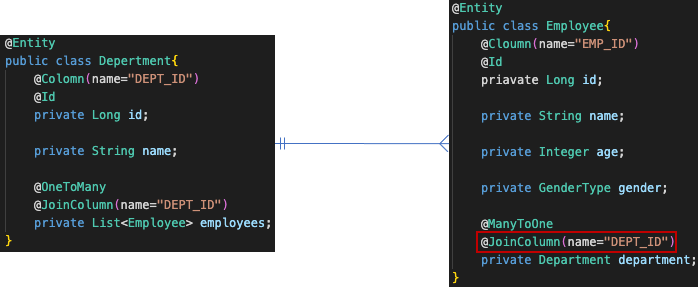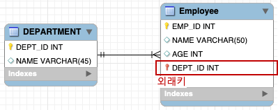 DB에서는 Employee의 department에서 외래키 관리를 하고 있으므로