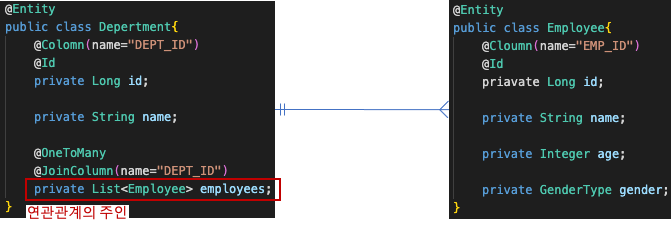 1:N 관계에서 1의 관계에 있는 Department의 employees가 연관관계의 주인이므로