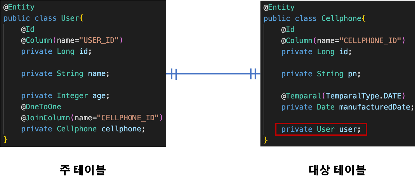 1. 1:1 관계에서 주 테이블(엔티티) User에 cellphone 참조변수 추가